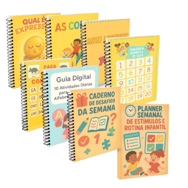 Com este guia prático, você vai descobrir 10 atividades simples e eficazes para estimular leitura, escrita e concentração tudo isso durante momentos do dia a dia, como o banho, as refeições ou o passeio em família.