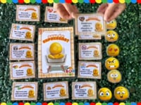 Recurso lúdico para ajudar a criança a identificar emoções e expressões faciais por meio de emojis. Cada cartão apresenta uma situação do dia a dia para relacionar com a emoção correspondente, estimulando empatia, linguagem e habilidades sociais.