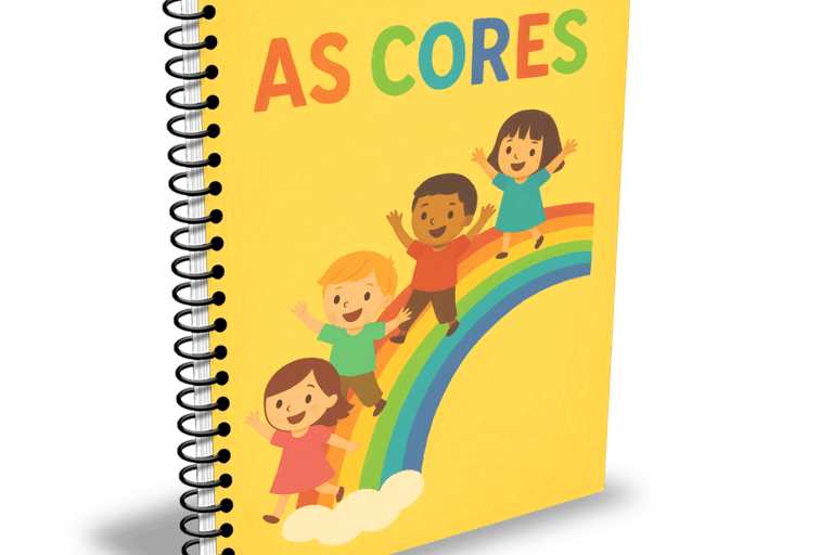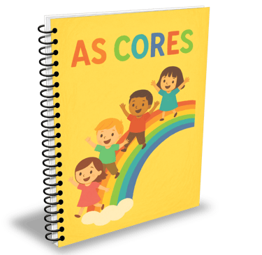 Material educativo para ajudar a criança a reconhecer e nomear as cores básicas por meio de imagens do cotidiano.