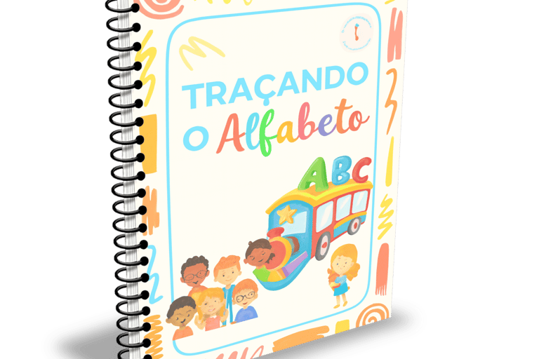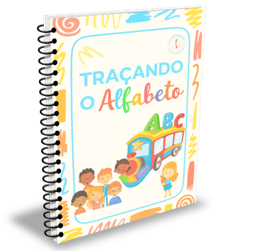 O Traçando o Alfabeto fortalece a alfabetização com letras pontilhadas para treino da escrita e imagens que representam sons iniciais, estimulando consciência fonológica e visual. A última página incentiva a criança a reconhecer a letra do próprio nome, reforçando identidade e pertencimento.